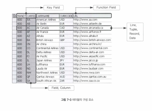 테이블은 실제 데이터 베이스의 물리적인 테이블과 ABAP DICTIONARY의 테이블이 존재함