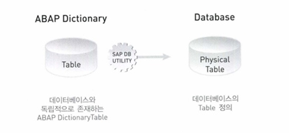 별도로 abap dictionary라는 것을 두고 sap db utility를 통해 데이터 베이스와 통신하게 된다.