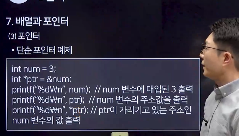 -*(참조 연산자) : 포인터 변수가 가리키는 메모리 주소에 저장된 값을 변환하는 연산자