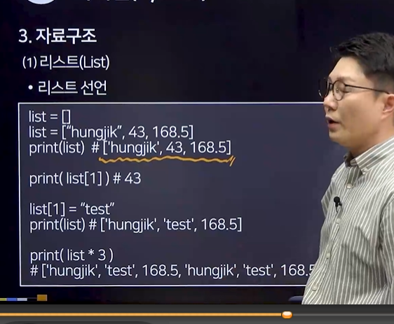 리스트의 요소들은 대괄호[]로 둘러싸이며, 콤마, 로 구분