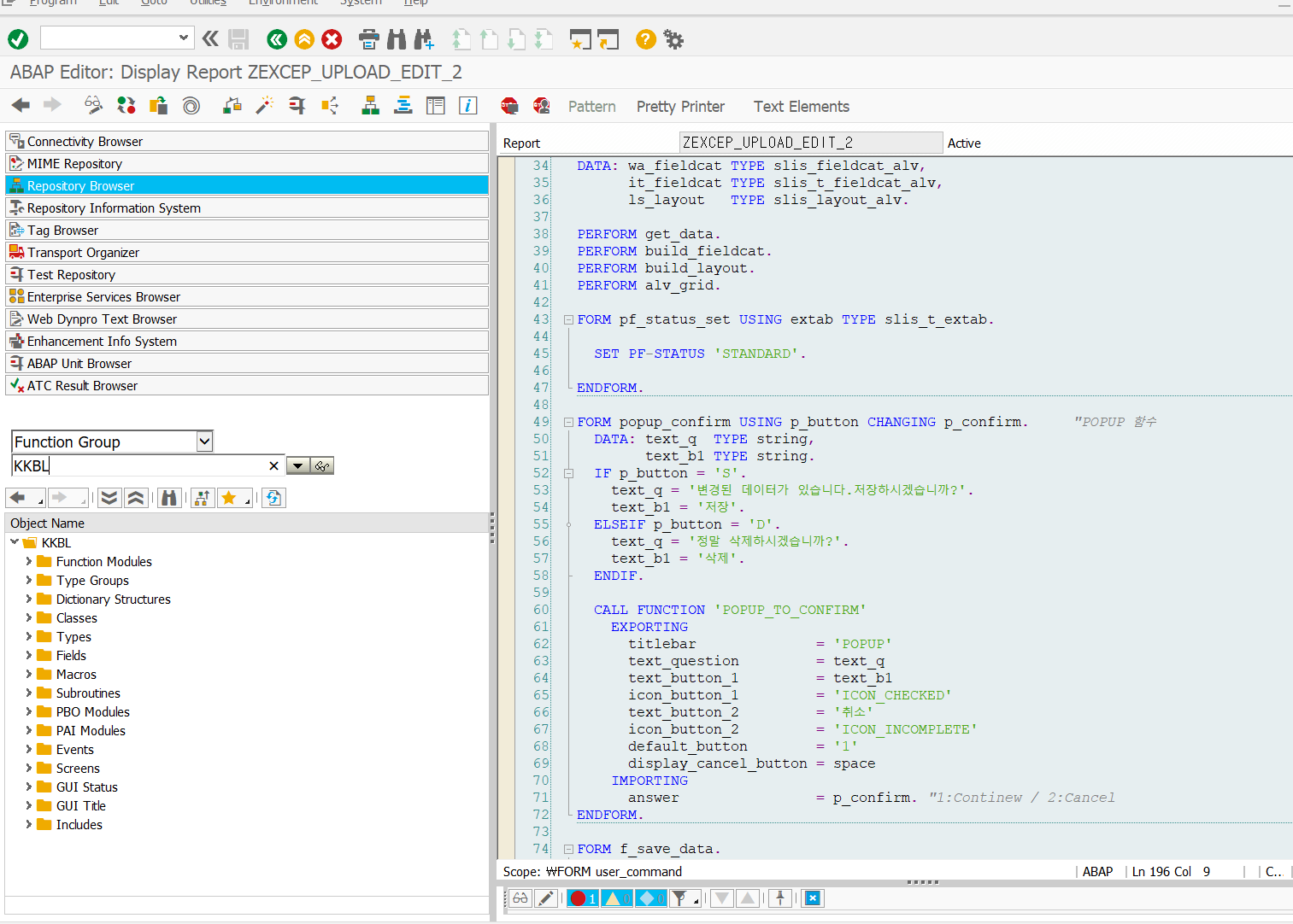 FORM popup_confirm USING p_button CHANGING p_confirm. "POPUP 함수