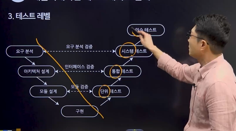 통합 테스트 : 상향식(드라이버), 하향식(스텁) 테스트, 빅뱅 테스트, 백본 테스트(상향식+하향식)가 있음