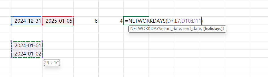 목표: 영업일 반영한거, 반영안한거, 한국 공휴일 반영한 경과일 계산하는 엑셀 함수 이해하기