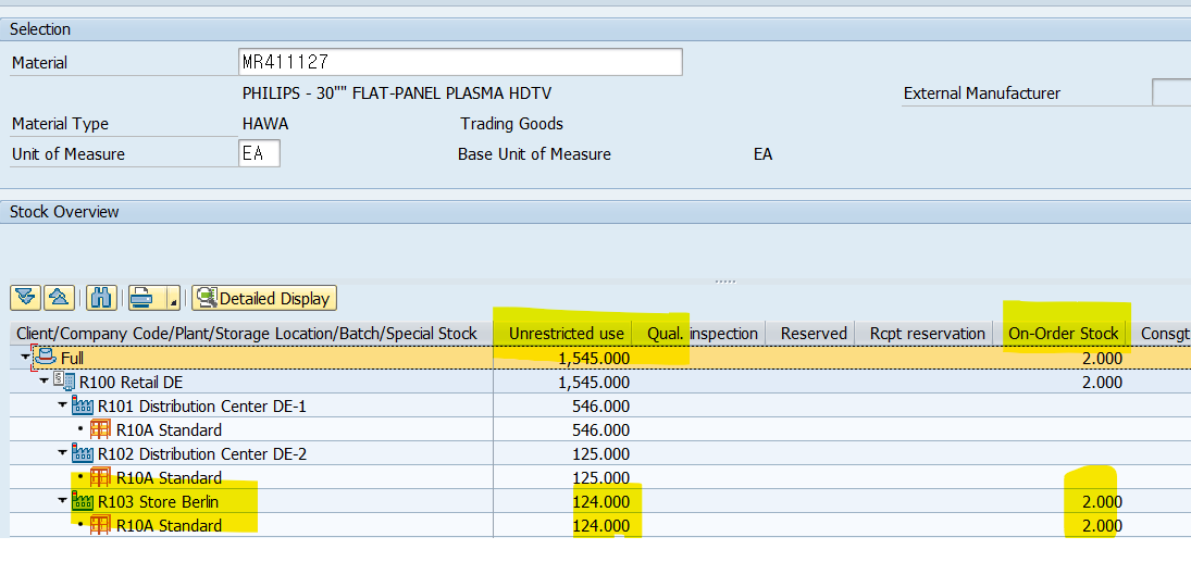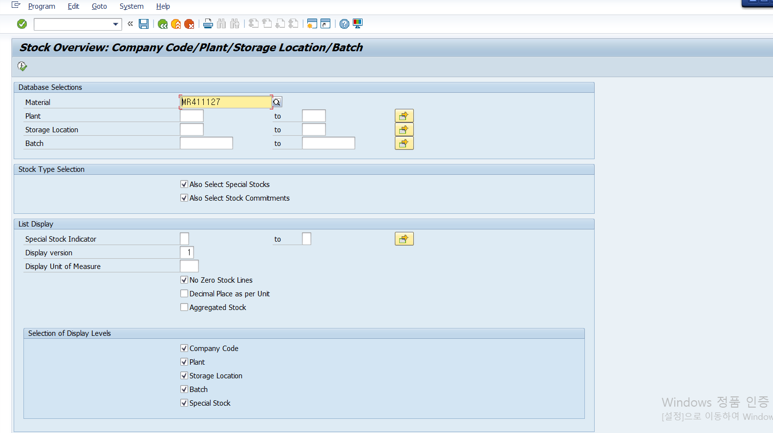 T- CODE: MMBE -재고 상태 확인