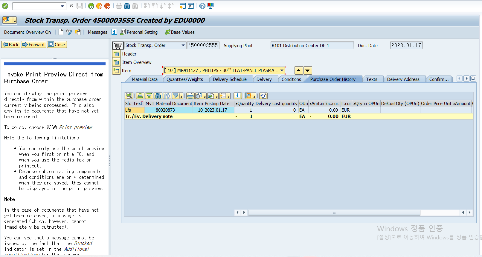 1단계: Stock Tranfer Order