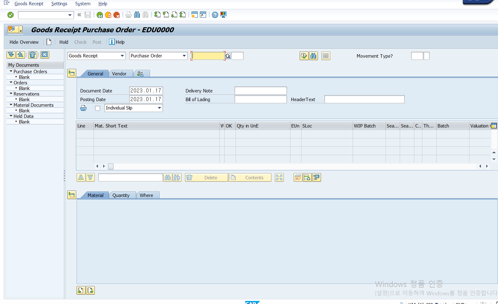 4단계: Creating Goods Receipt