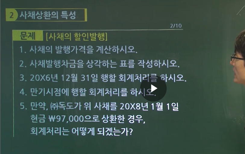 유효이자율법 : 거래에 내재된 유효이자율에 의해 매년 인식할 이자(채무자의 경우는 이자비용, 채권자의 경우는 이자수익)를 계산하는 방법