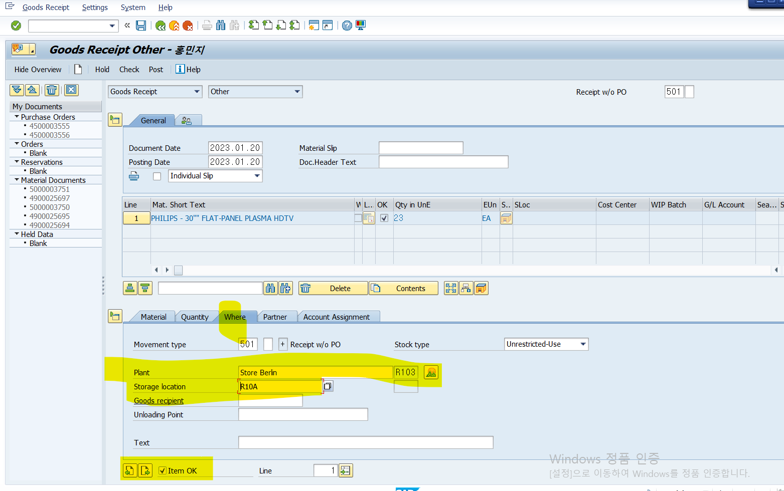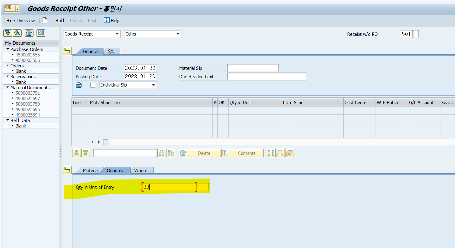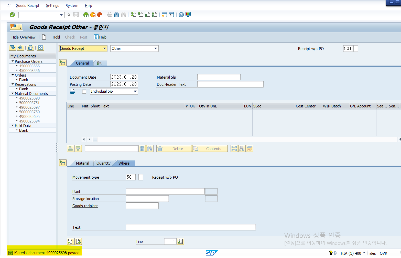 gr통해서 기초 재고 넣은 이후에 재고 수량 변화
