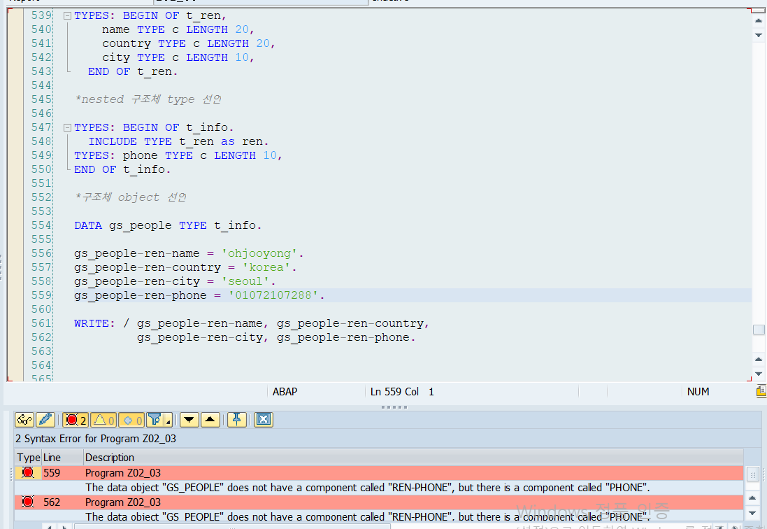DATA gv_var TYPE t_var. * 위에 선언한 type을 적용한 gv_var라는 데이터 선언