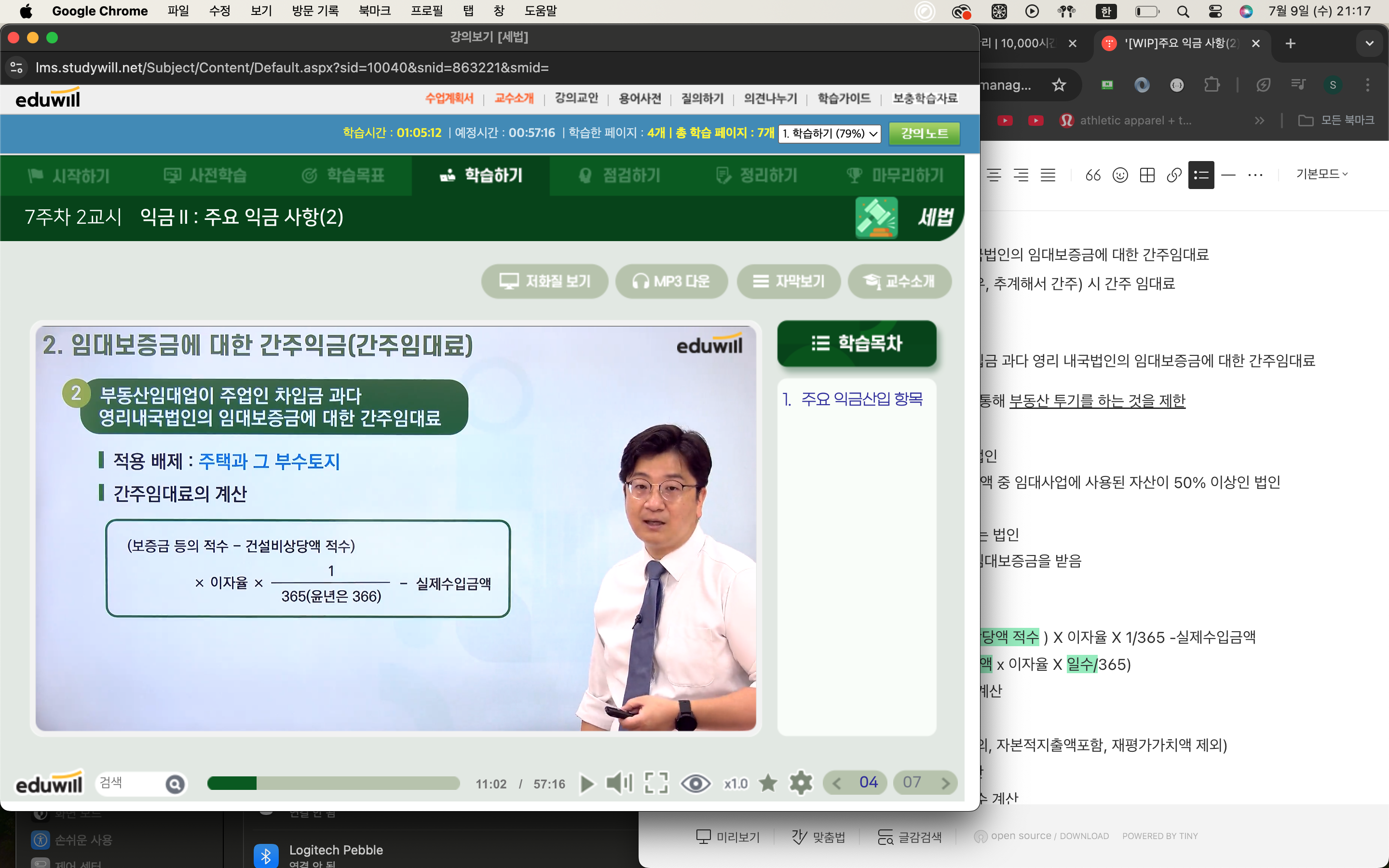 =(보증금 등 X 이자율 X 일수/365) - (건설비 상당액 x 이자율 X 일수/365)-실제수입금액(실제 법인세가 과세되는 부분)