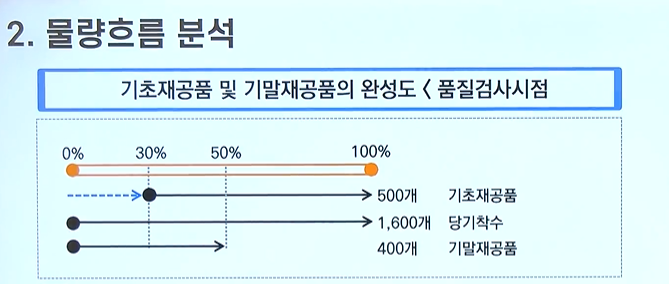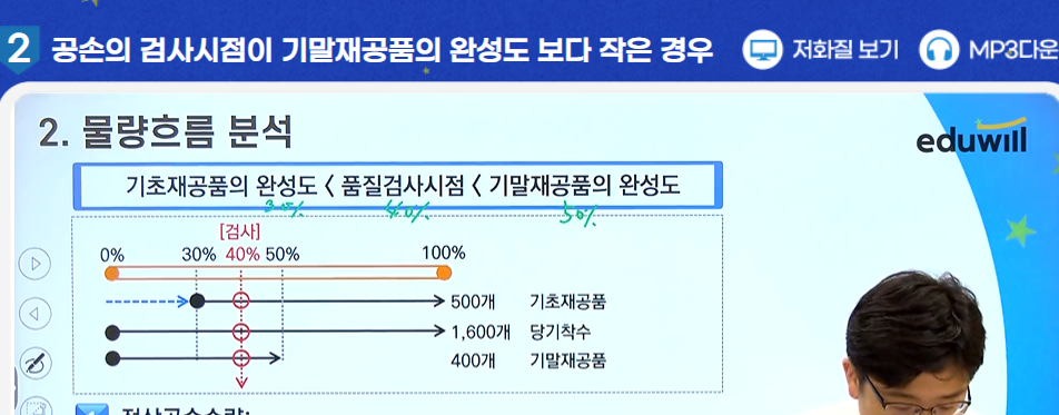 기초 재공품(30%) -> 당기 중 품질 검사 O