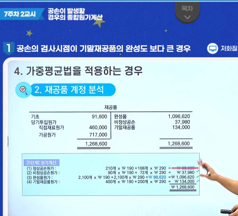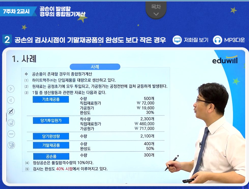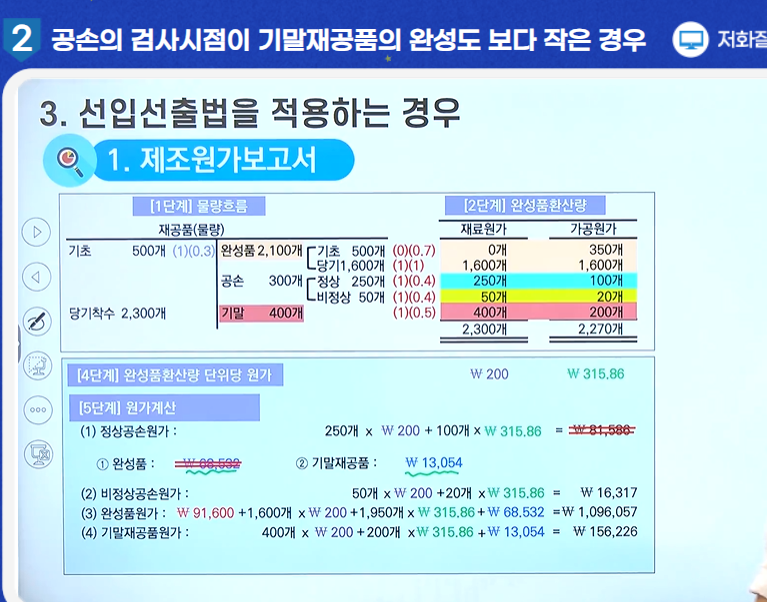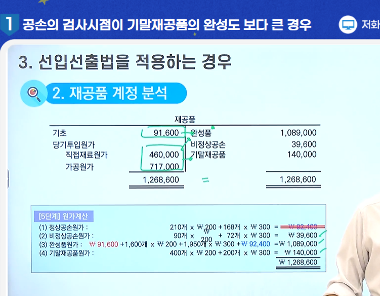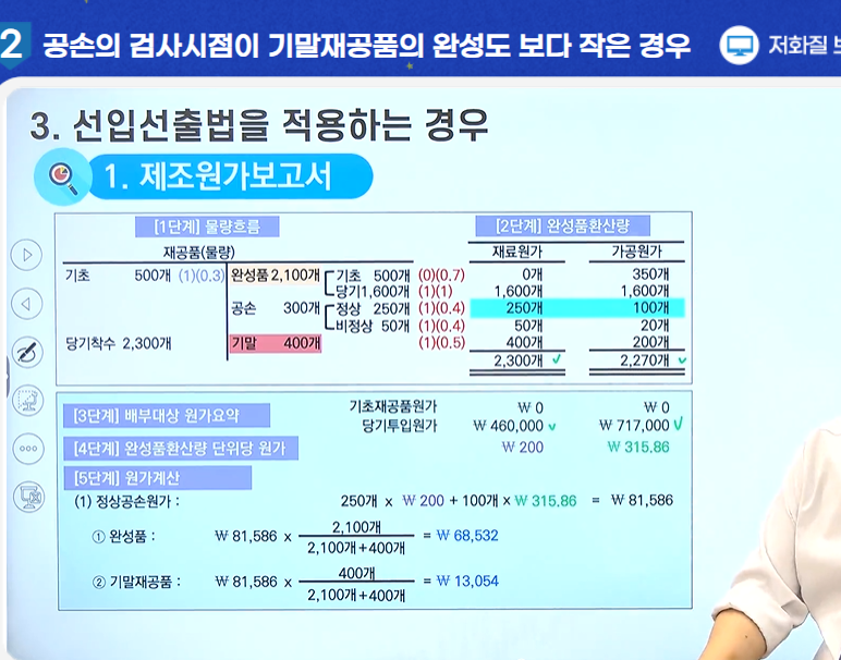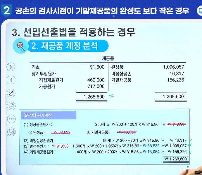 1절 공손의 검사시점이 기말재공품의 완성도 보다 큰 경우 (기말 재공품이 당기 중에 품질 검사를 받지 않음)