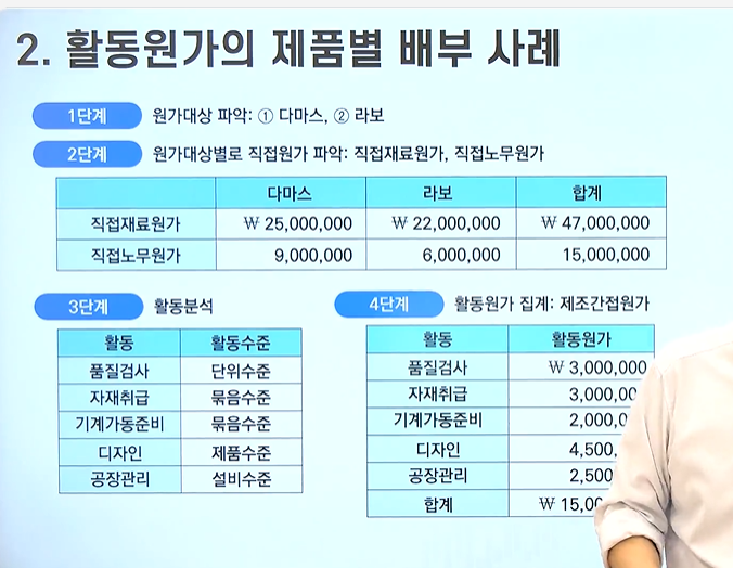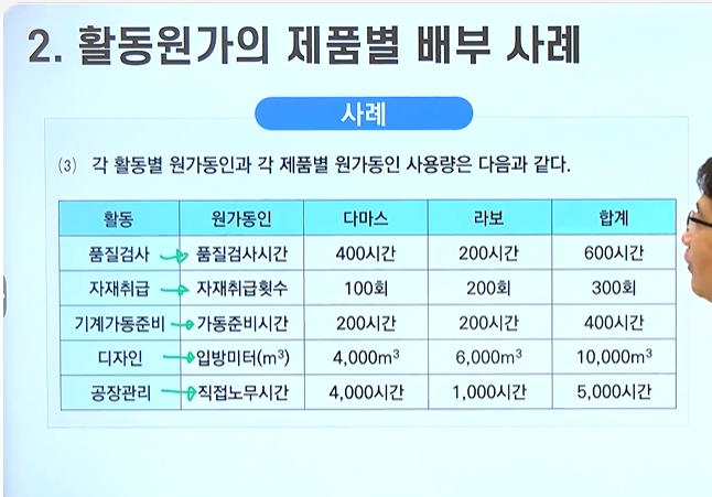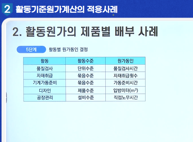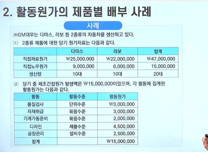 제조간접원가 : 활동별 원가배부율을 이용하여 원가대상에 배부