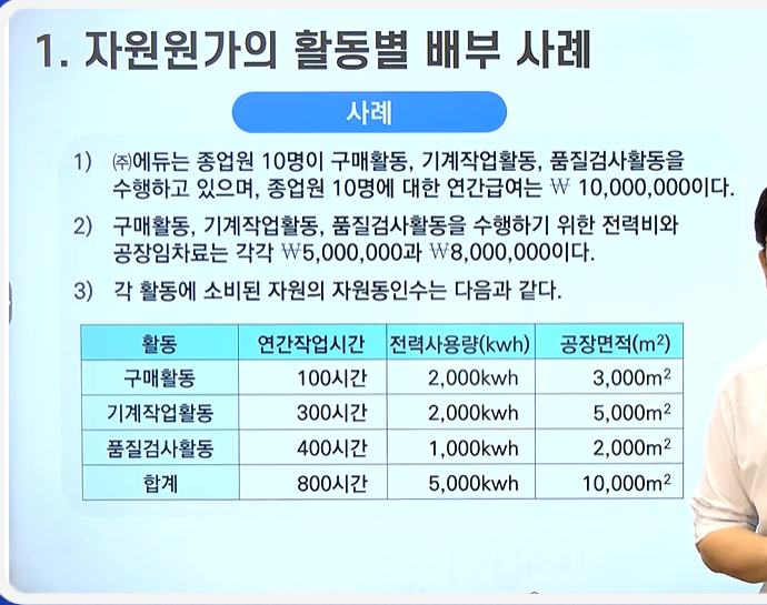 (활동이 자원을 소비 -> 따라서 자원이 활동에 어떻게 배부되는 지 확인 필요)