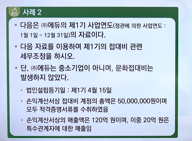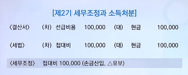 제 2기에 100,000원의 접대행위가 발생하였으며, 현금지출하였음
