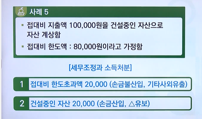접대비 한도초과액이 발생한 경우, 손비계상액, 건설중인 자산, 고정자산 증 하나일 텐데, 간편성을 고려하여 순서대로 한도초과액을 배부함
