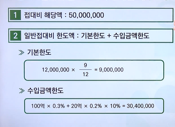■ 일반접대비 한도액 : 기본한도 + 수입금액 한도