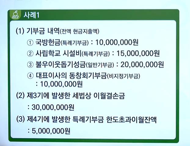 [1순위] 이월된 법정기부금에 대한 세무조정 : 손금산입, 기타