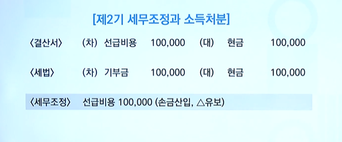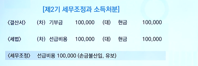 제 2기에 100,000원의 기부금을 현금 지출하였음