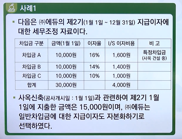 >> 특정차입금 평균지출액 : 10,000 X 365/365 = 10,000