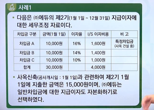 >> 특정 차입금 : 10,000 X 16% = 1,600
