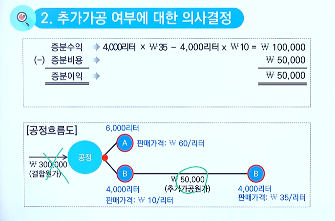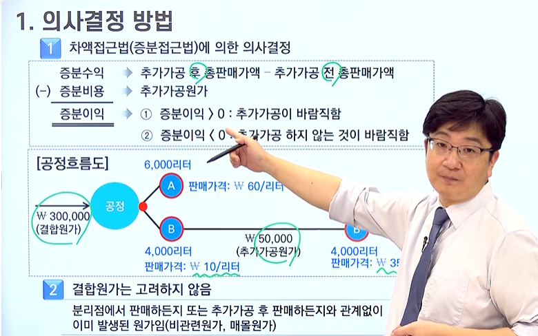 차액접근법(증분접근법) : 추가 가공을 했기때문에 증가되는 수익/비용을 통해서 의사결정하는 것