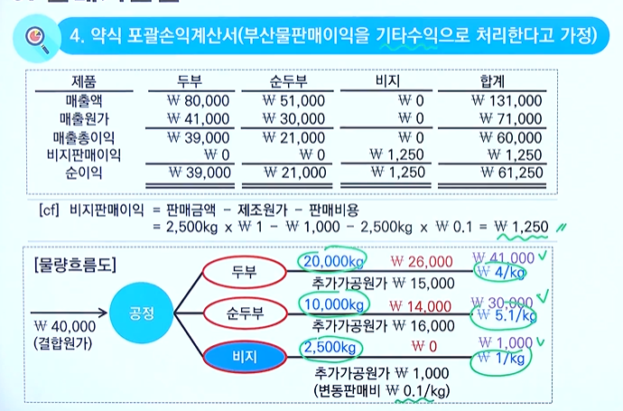 - 부산품 판매이익이 계상됨-> 기타 수익으로 인식하거나, 연산품의 매출원가에서 차감함