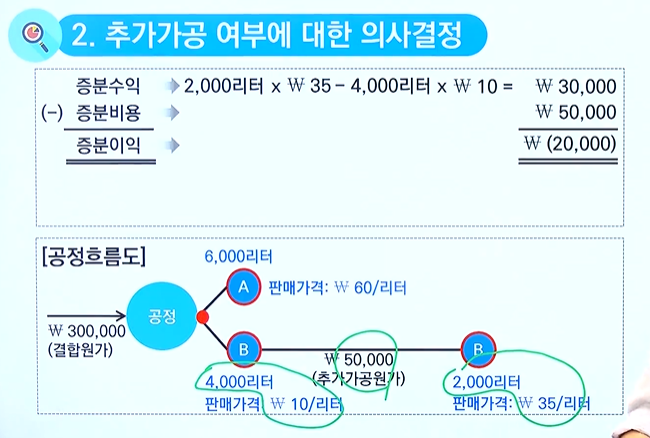 차액접근법(증분접근법) : 추가 가공을 했기때문에 증가되는 수익/비용을 통해서 의사결정하는 것