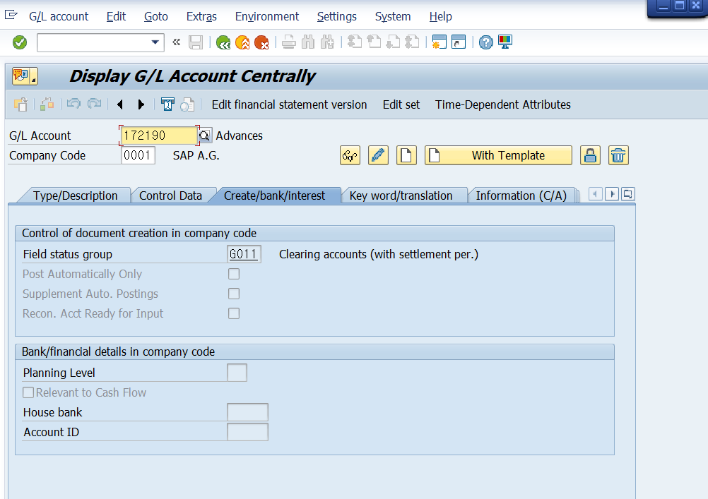 ※ chart of account 수정 티 코드에서 'time dependent attrigutes' 버튼 기능을 통해 gl account에 대한 이력 관리 가능