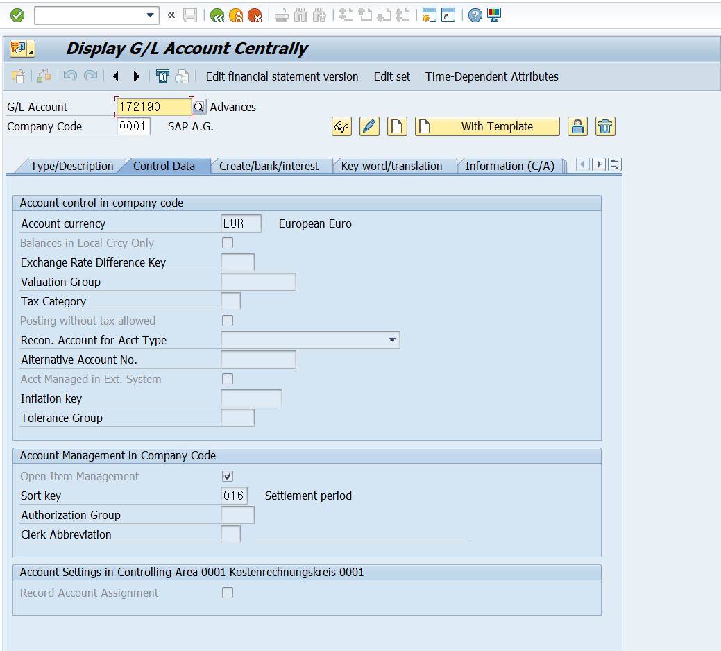 4) Open Item Management : 미결계정(open item)으로 관리할 것인지 결정하는 필드. 미결계정은 반드시 반제(clearing)처리가 필요한 계쩡이라는 의미임. 일반적으로 Vendor 나 Customer 등의 Recon계정은 여기에 체크하지 않고 자동으로 미결계정으로 시스템이 인식함. 일반적으로 Bank, 세금, 자재(raw material), Recon, profit & loss 계정등은 Open 계정으로 설정하지 않아도 자동으로 Open 계정으로 인식함