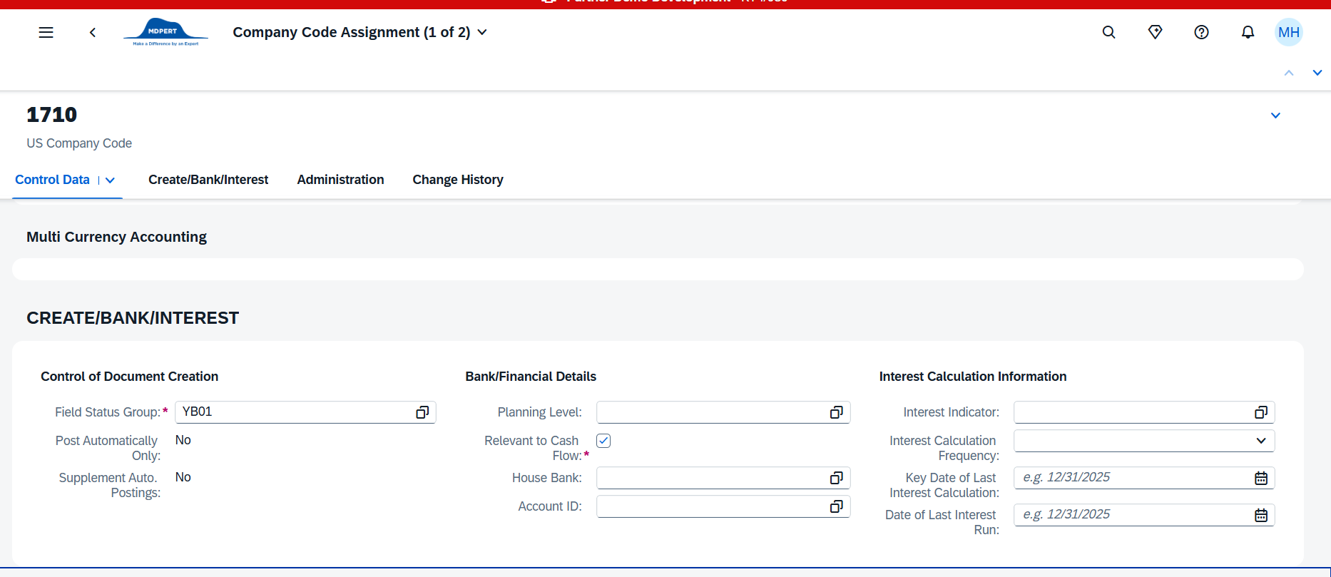 예시) company code, control data, bank/interest/information