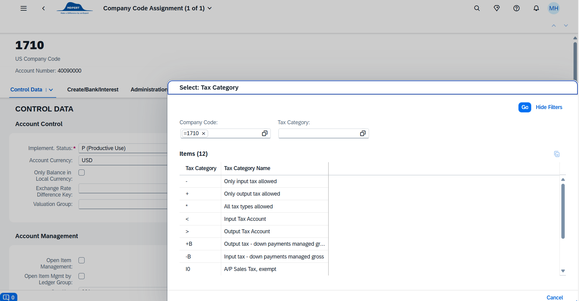 G/L ACCOUNT - Company code별로 tax code 지정