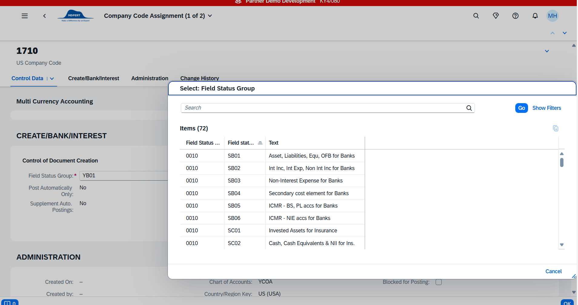 ※ 계정코드의 필드 통제는 계정그룹으로도 할 수 있지만 계정코드 생성/조회/변경 등의 트랜잭션 코드로도 통제 가능하므로 두 군데 모두에서 통제 가능함. 하지만, 트랜잭션 코드 별로는 보통 all로 처리하고, 계정그룹으로만 화면필드 상태를 조정하는 것이 편리함