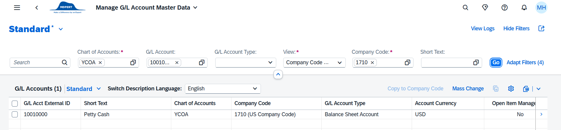 ※ Company code view의 G/L Account Group 상 local currency 수정하는 경로 확인 필요
