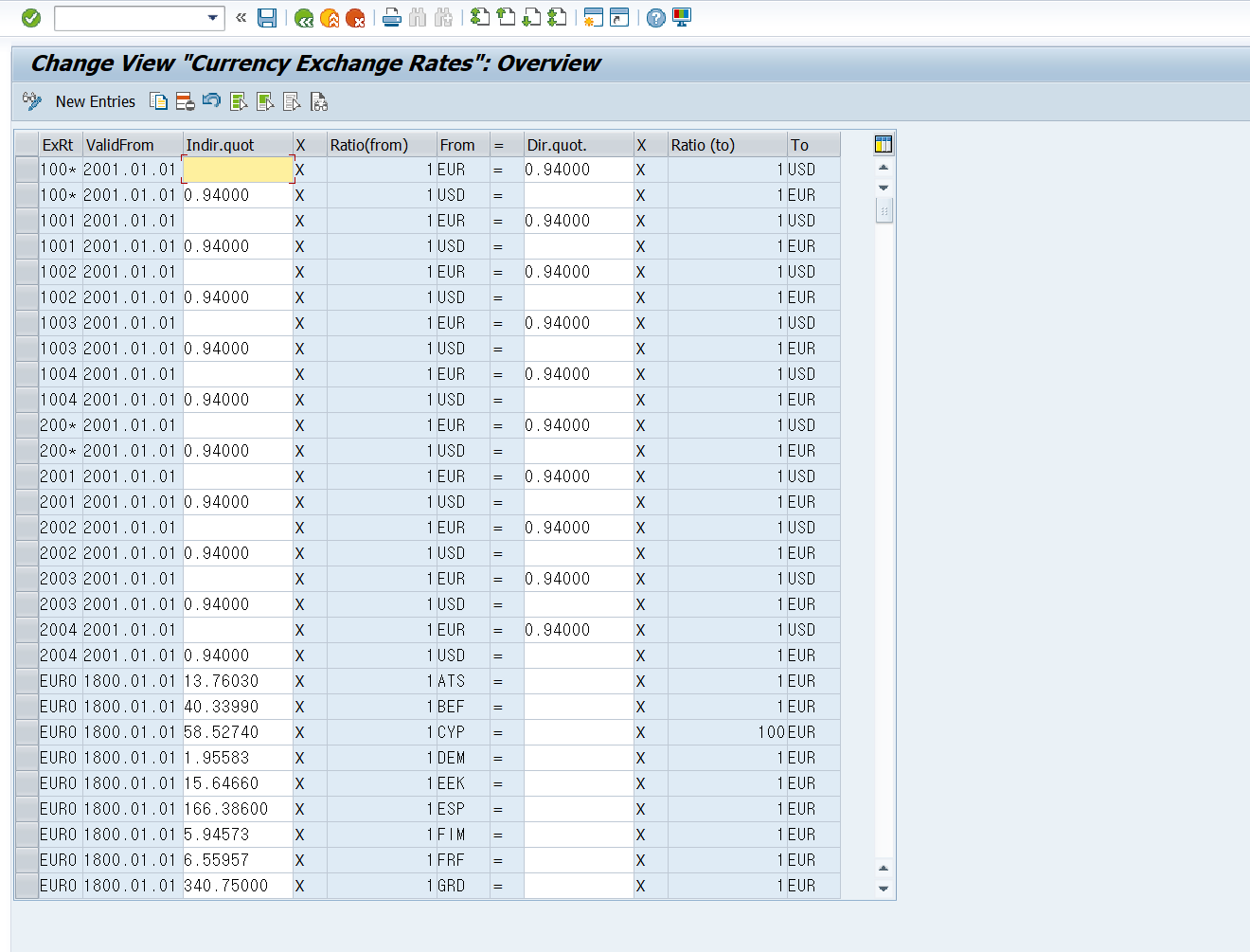 - Ref.crcy : Currency Translation(통화환산)을 위한 기본통화 설정. 예를 들어 이 필드에 'KRW'값을 넣어서 Currency Translation의 기본통화를 설정해놓고 환율값을 입력할 때 EUR : KRW 환율 값과 CNY:KRW 환율 값을 입력해 놓는 다면 EUR:CNY는 환율 값을 따로 입력하지 않더라도 Currency Translation에 의하여 KRW 환율값을 기준으로 하여 자동으로 변환하여 계산해 주는 방식 ( 즉, 서로 다른 통화 환율 값도 Ref.crcy 필드에 등록된 환율 값을 기준으로 변환 가능)