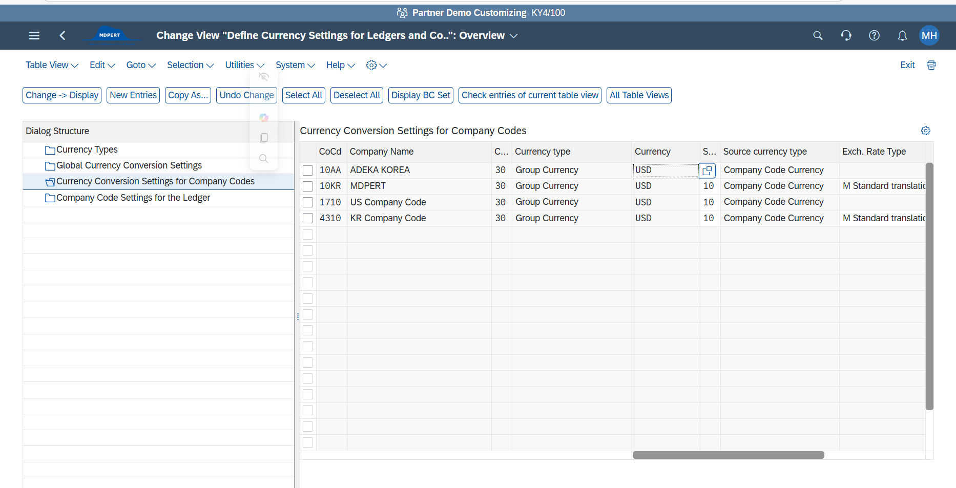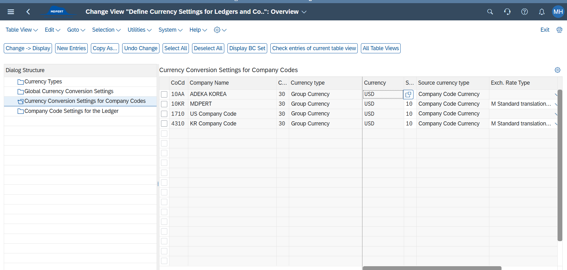 5-2. Currency for Company Code -> 이거 세팅 처음에 했던 것 같은데 여기서 더 수정할 수 있는지 확인해보기