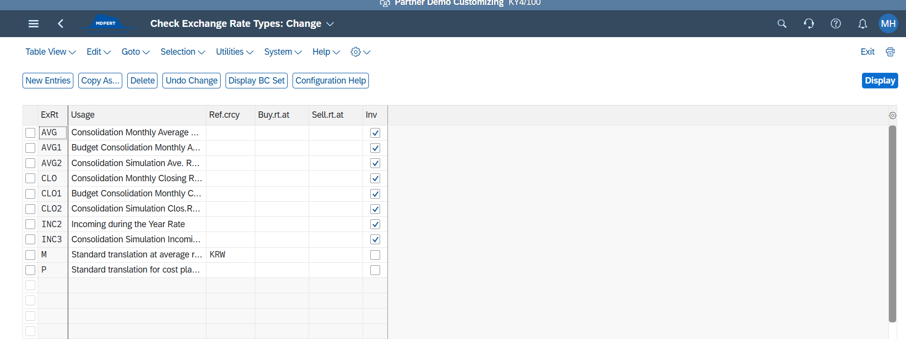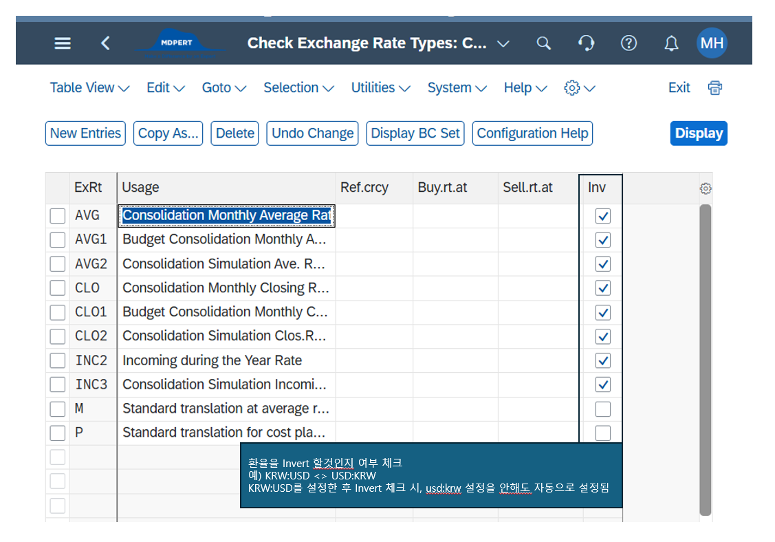 - M (Standard Translatoin at average rate) : 필수 타입 ( 그외의 환율 타입은 해당 기업의 필요에 따라서 여러가지 환율타입으로 만들고 사용할 수 있음)