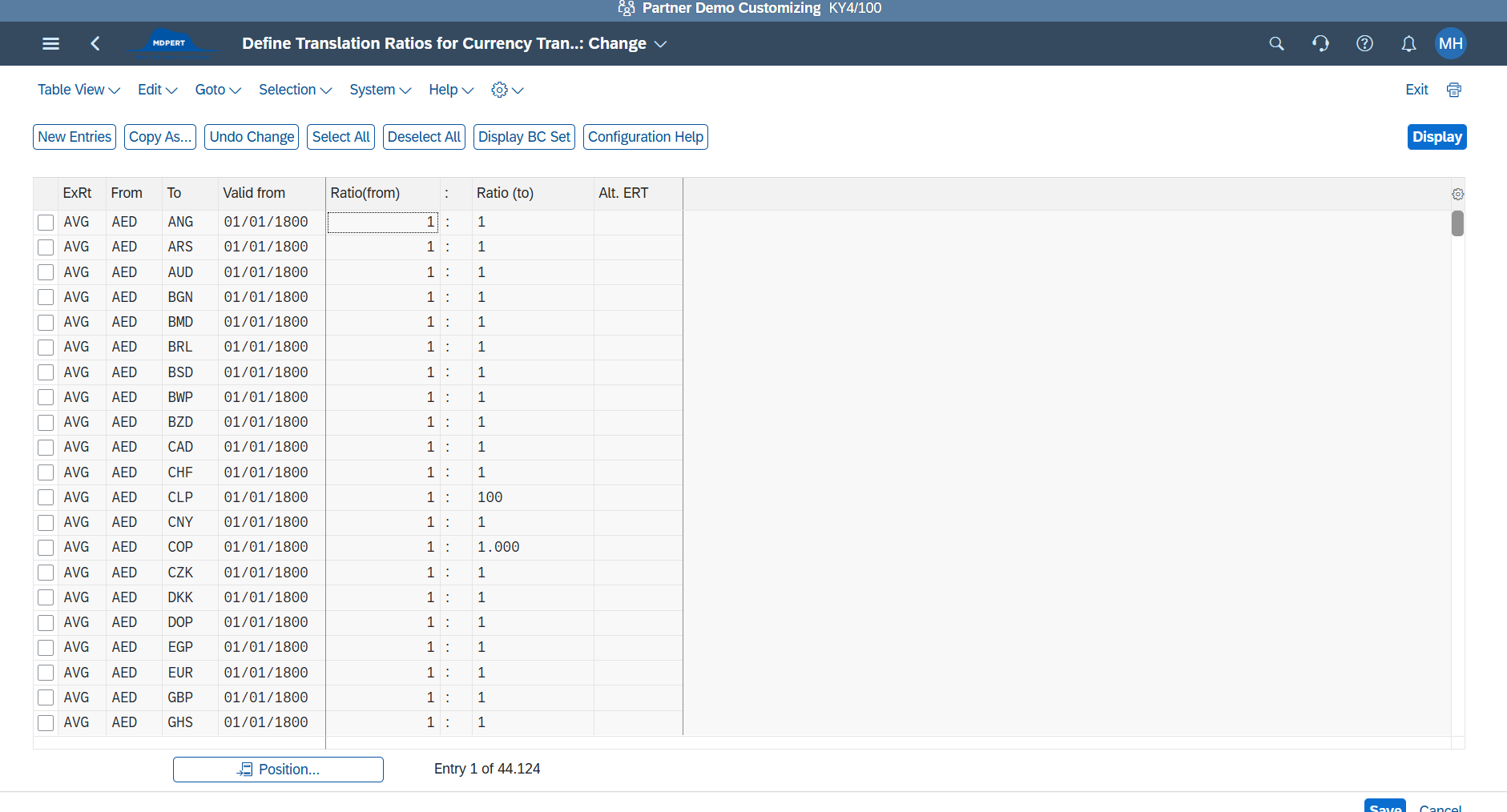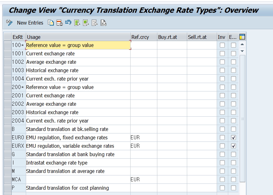 - EMU(European Monetary Union)는 유럽연합의 가이드라인에 따른 알고리즘을 이용한 환율 Translation 작업 수행. Translation 작업 시 유럽연합의 통화가 관련되어 있다면 이 필드에 체크를 하여 사용하여야 함. 이 필드에 체크를 한 경우에는 반드시 Ref. crcy에 Reference Currency 통화 코드 값을 반드시 세팅해야만 사용 가능