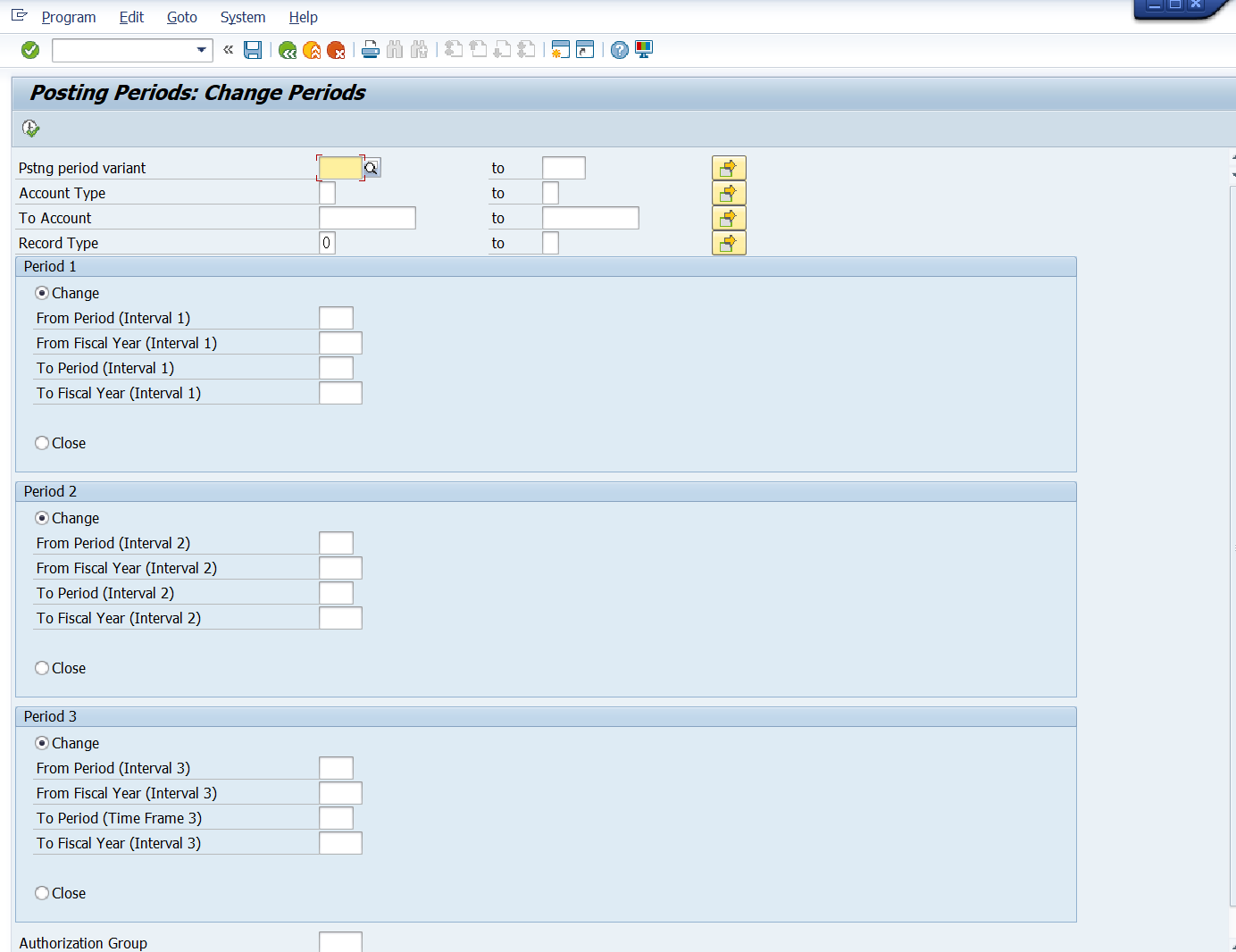 Open and Close Posting Periods Accounting to G/L Account Assignment Object