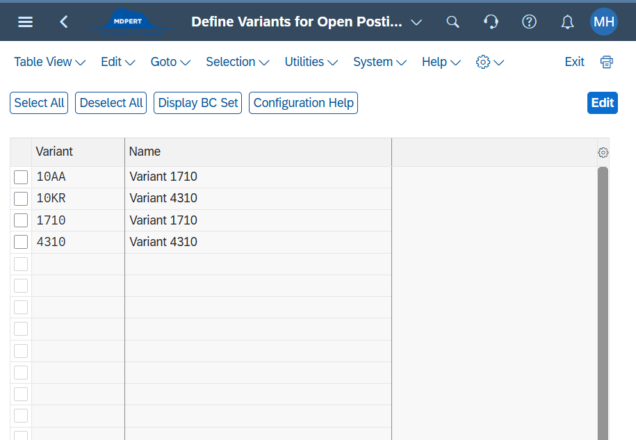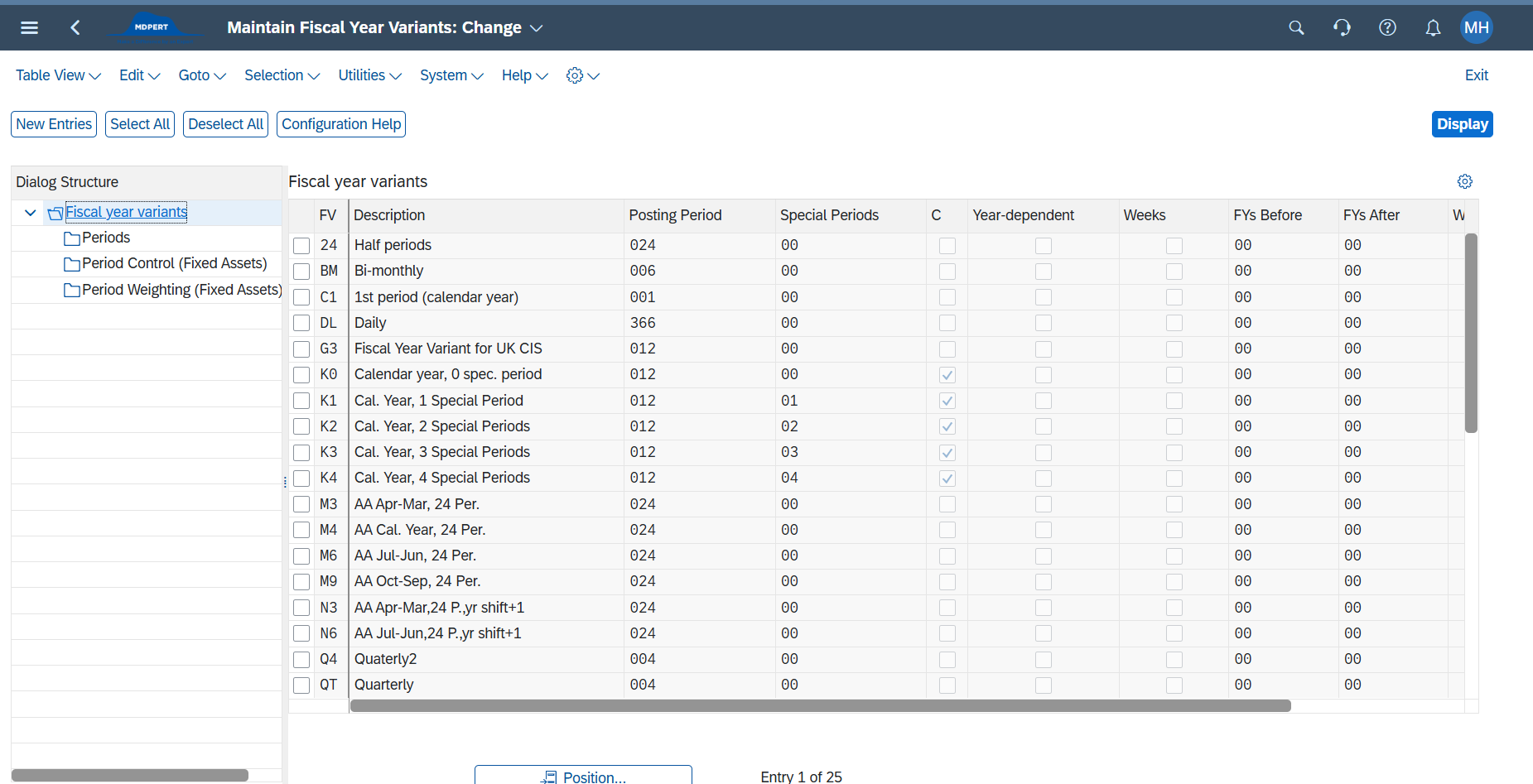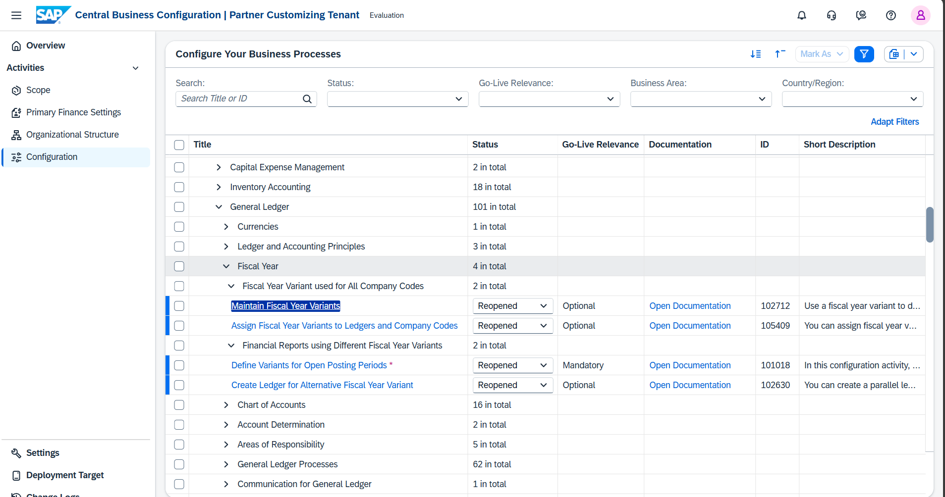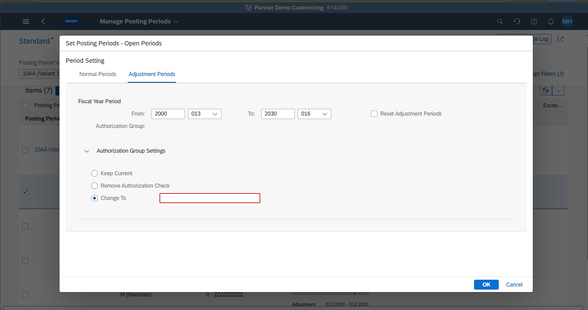 해당 variant 별로 Posting Period를 수동으로 조정함