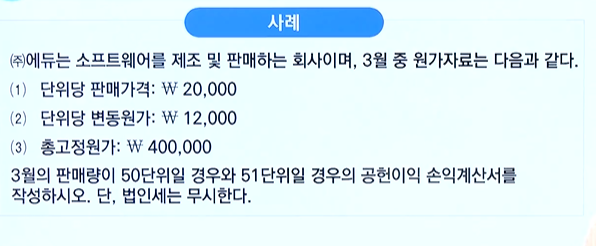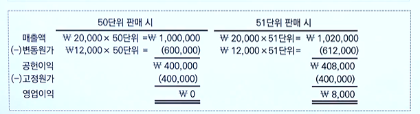 >>매출액 - 변동원가 - 고정원가