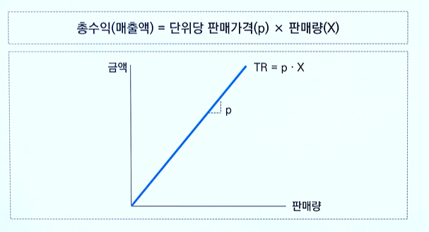 - TR( Total Revenue) = pX / p = 단위당 판매 가격 / X = 총생산량