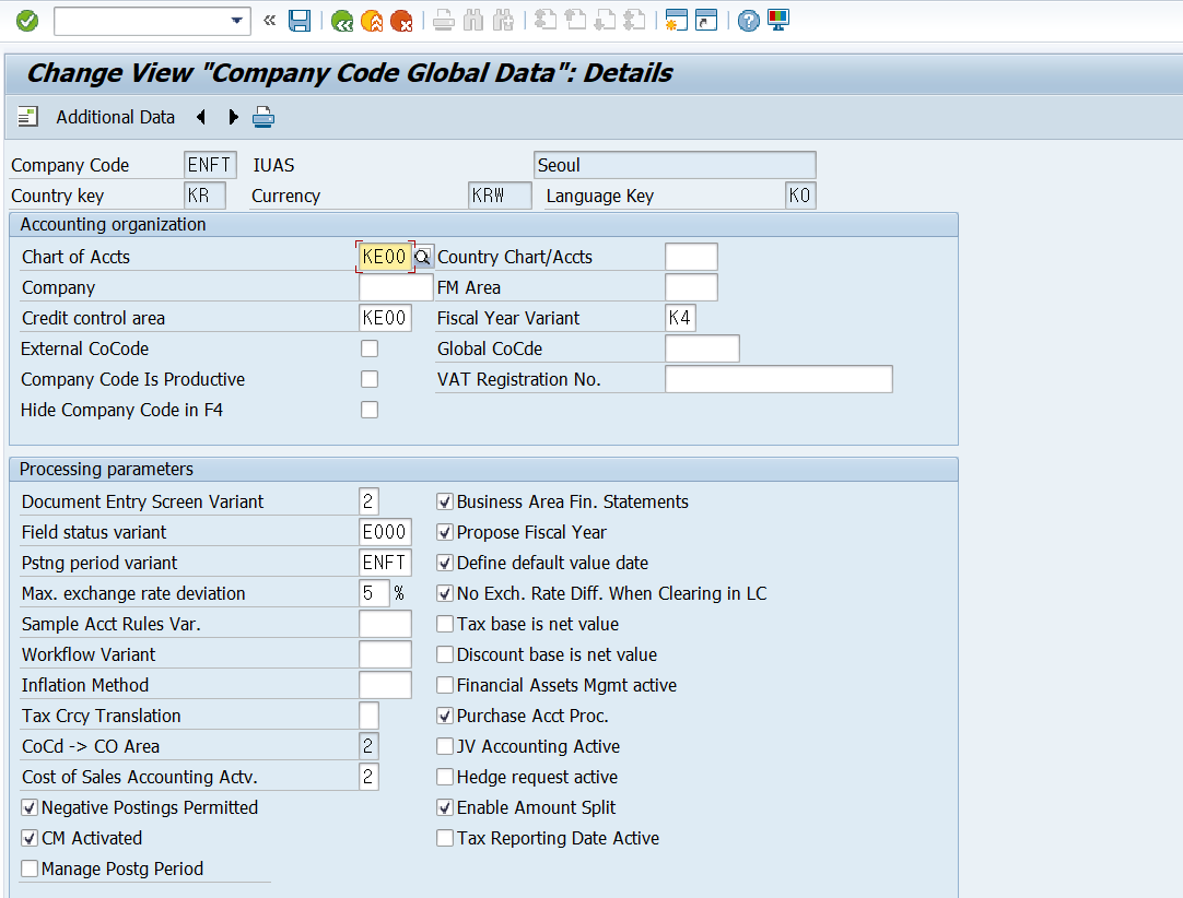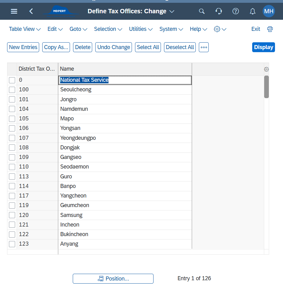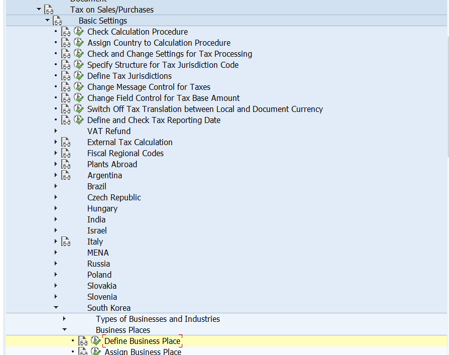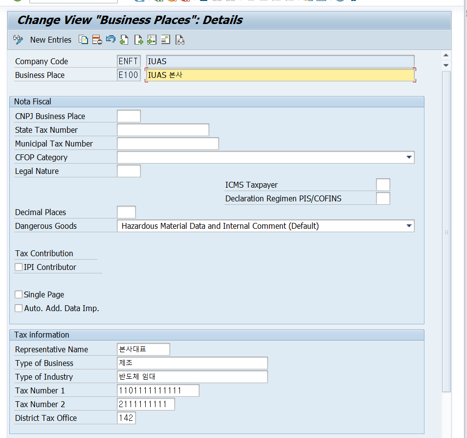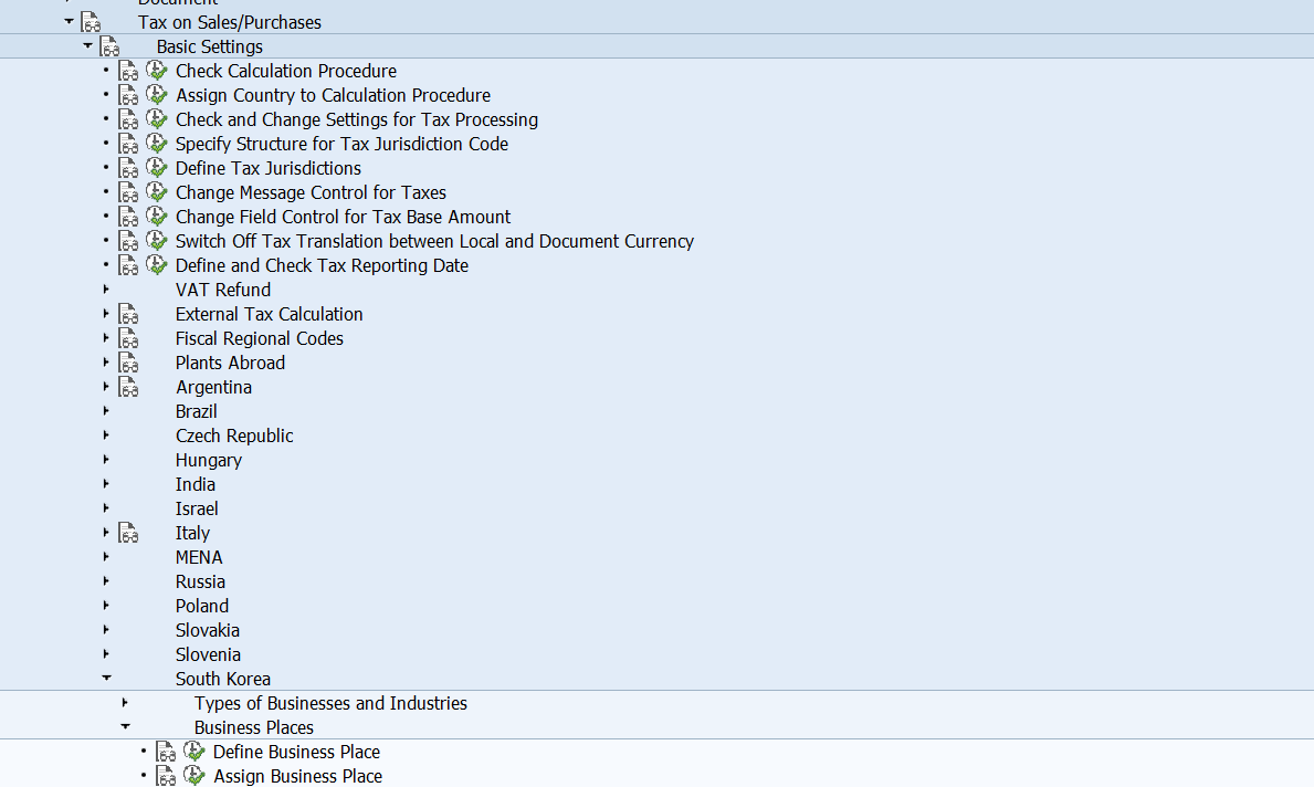 부가가치세 경우에는 국세청의 세무서(District Tax Office)에 신고를 하여야 하므로 전표 입력시에 세무서가 설정된 Business Place가 반드시 입력되어야 함