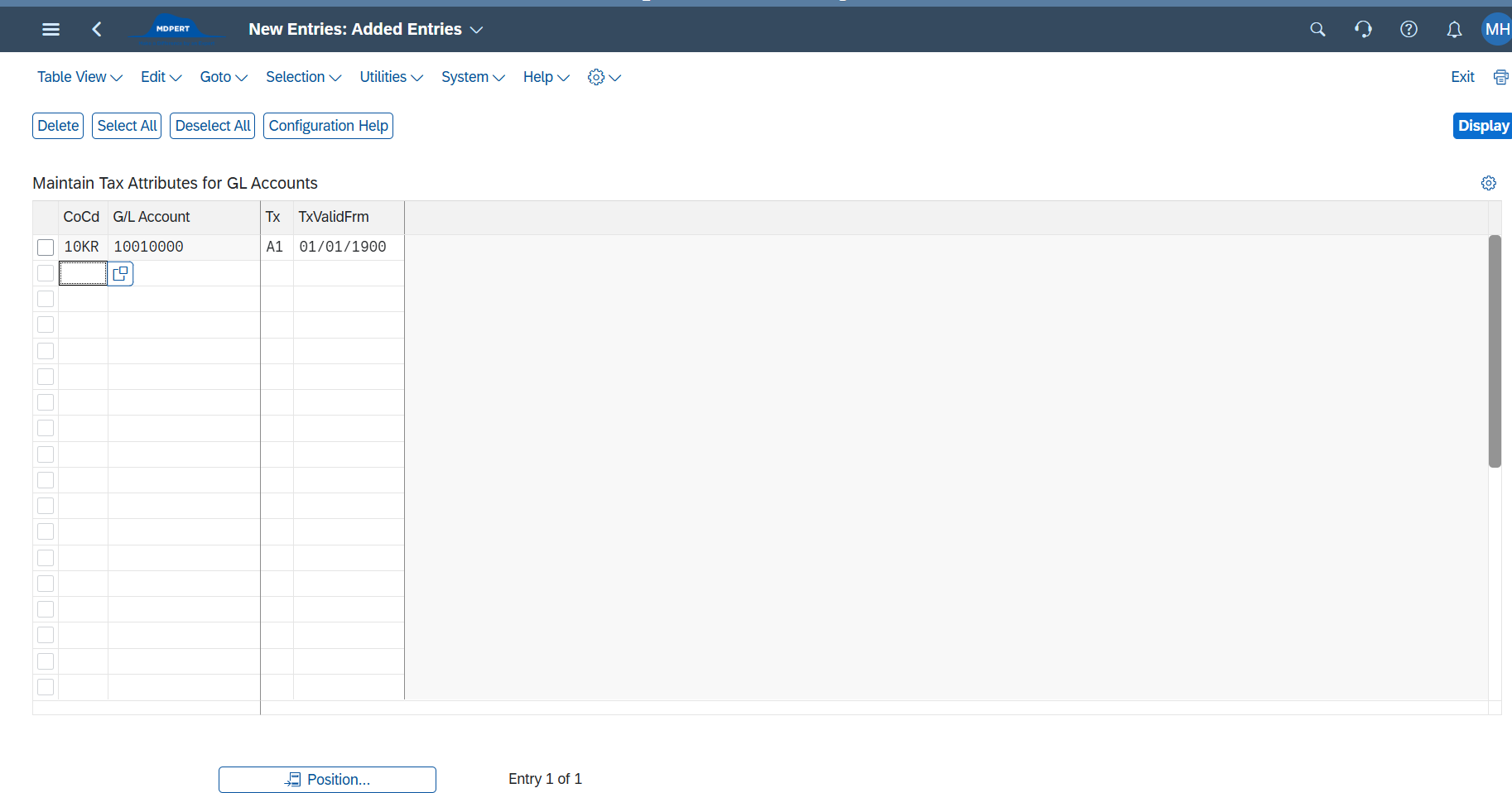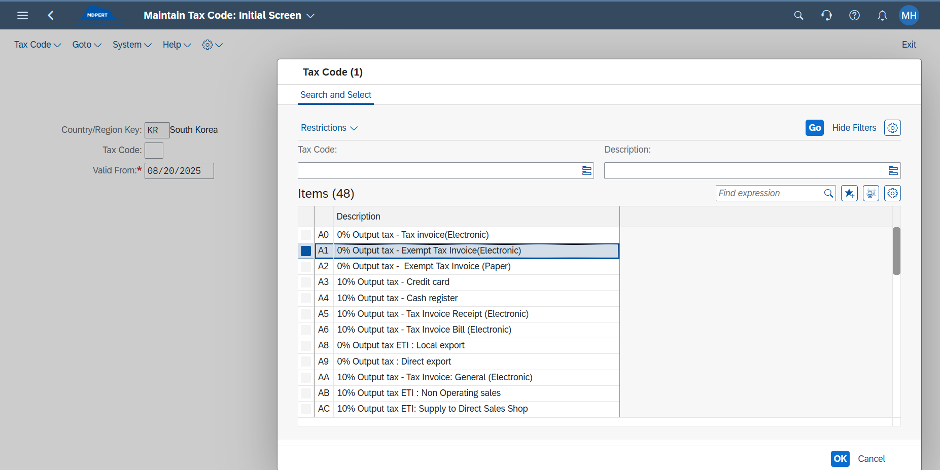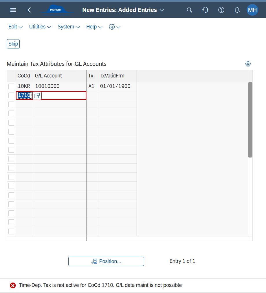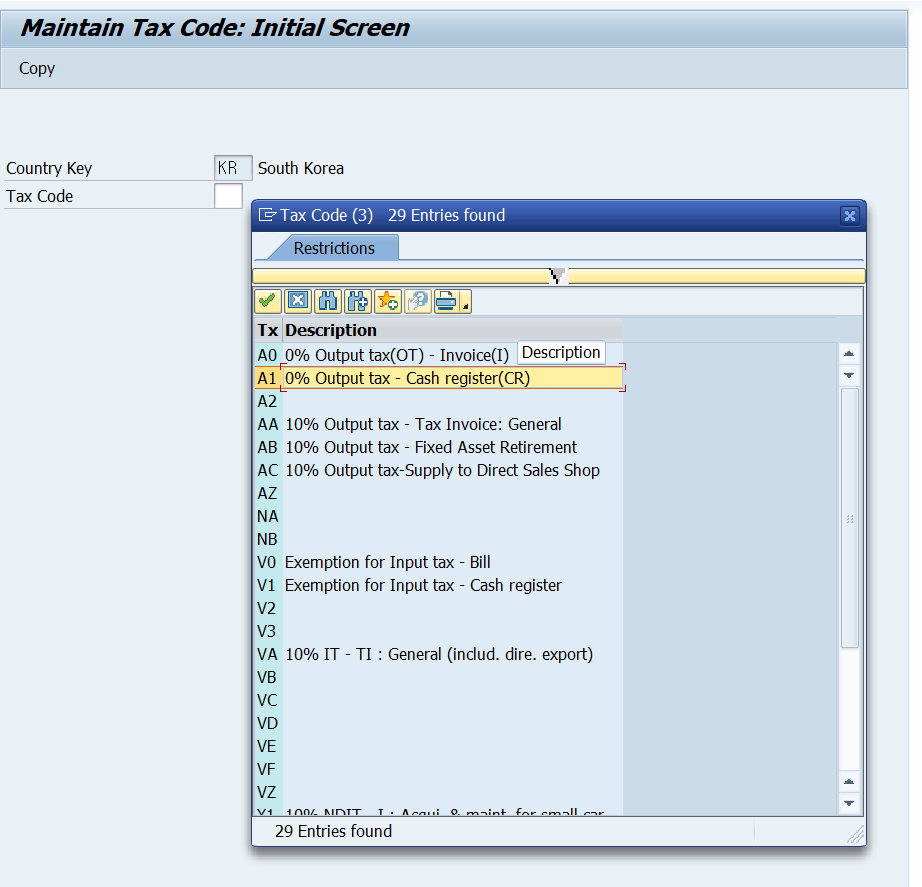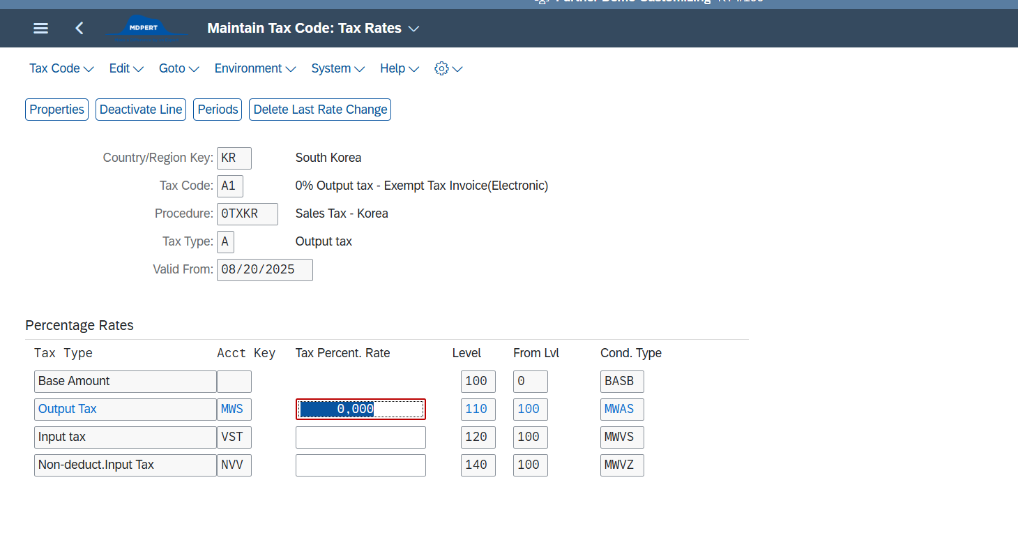 ▷ 이렇게 Company Code + G/L Account 기준으로 Tax code 연결해서 유효기간 설정