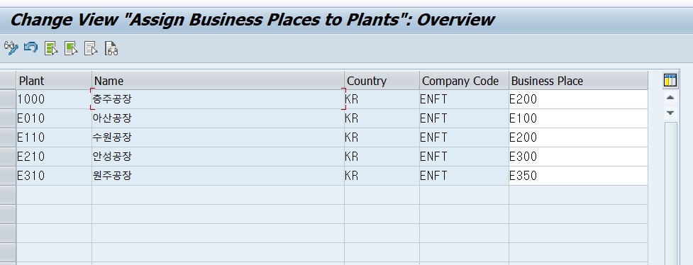 ※ 물동(구매나 판매) 부문에서 자동으로 넘어오는 전표인 경우에는 따로 Busines Place를 입력할 수 없음. 그래서 물동이나 세무서와의 연계를 위하여 물동에서 사용되는 조직단위인 Plant(플랜트)에도 Company Code와 Business Place를 미리 설정해 놓게 되면, Plant 만으로 원하는 Company Code와 Business Place를 자동으로 가져오게 됨