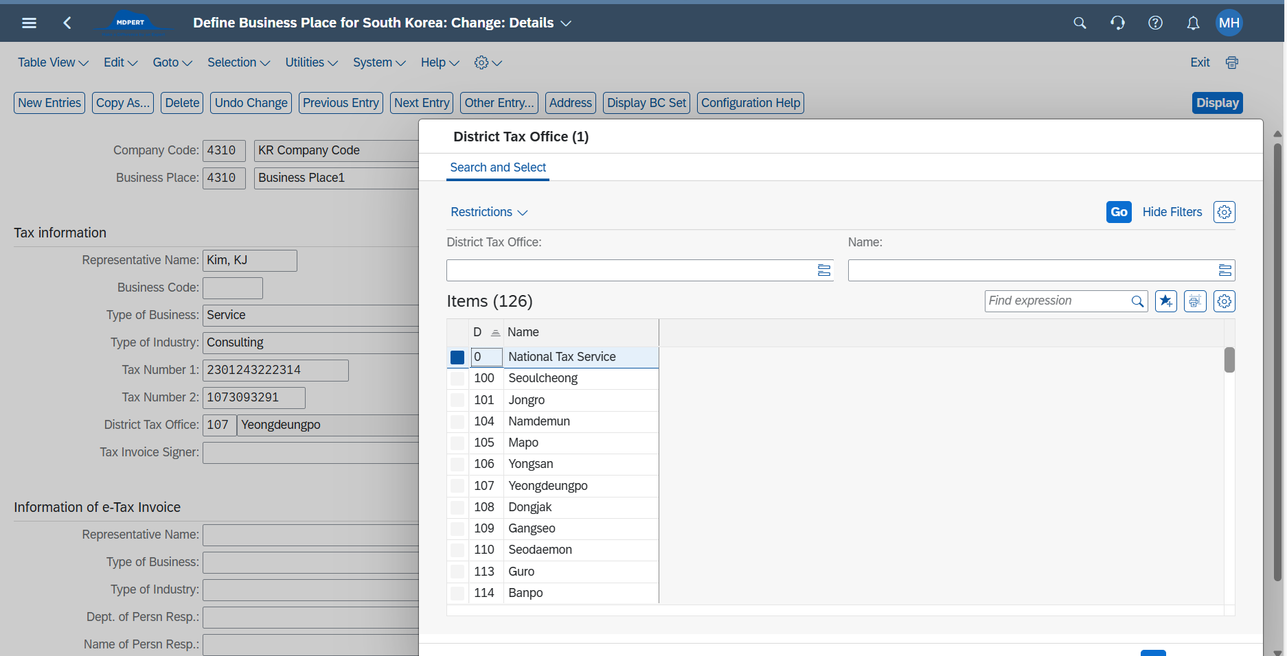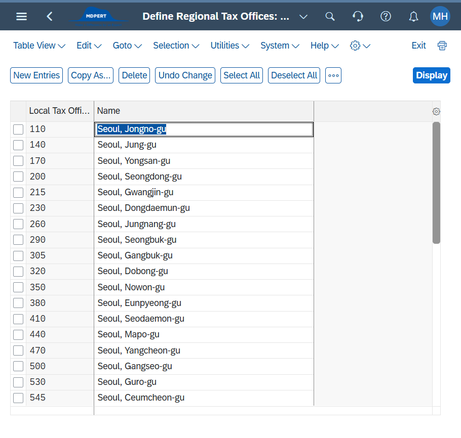 ∴ local tax office(지역관청 예)서울 중구청) 과 District Tax Office(세무서 정보 예) 남대문세무서) 모두 등록해야함 -> 전표 입력시 사용