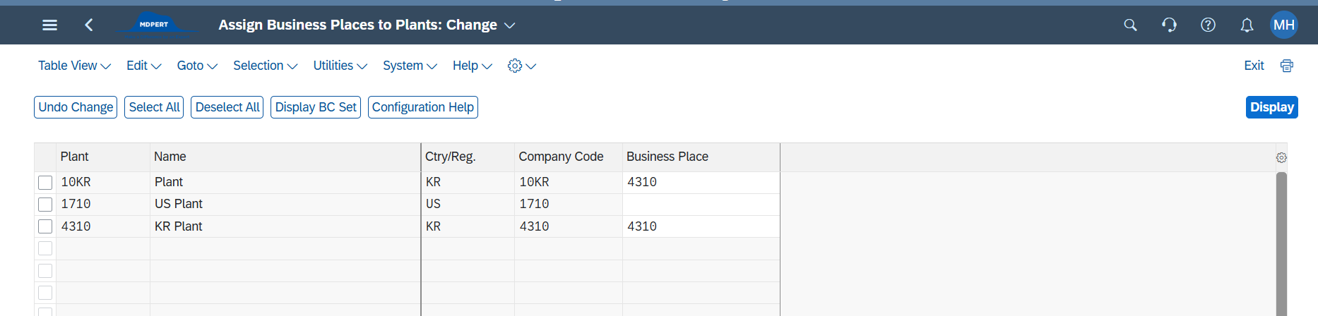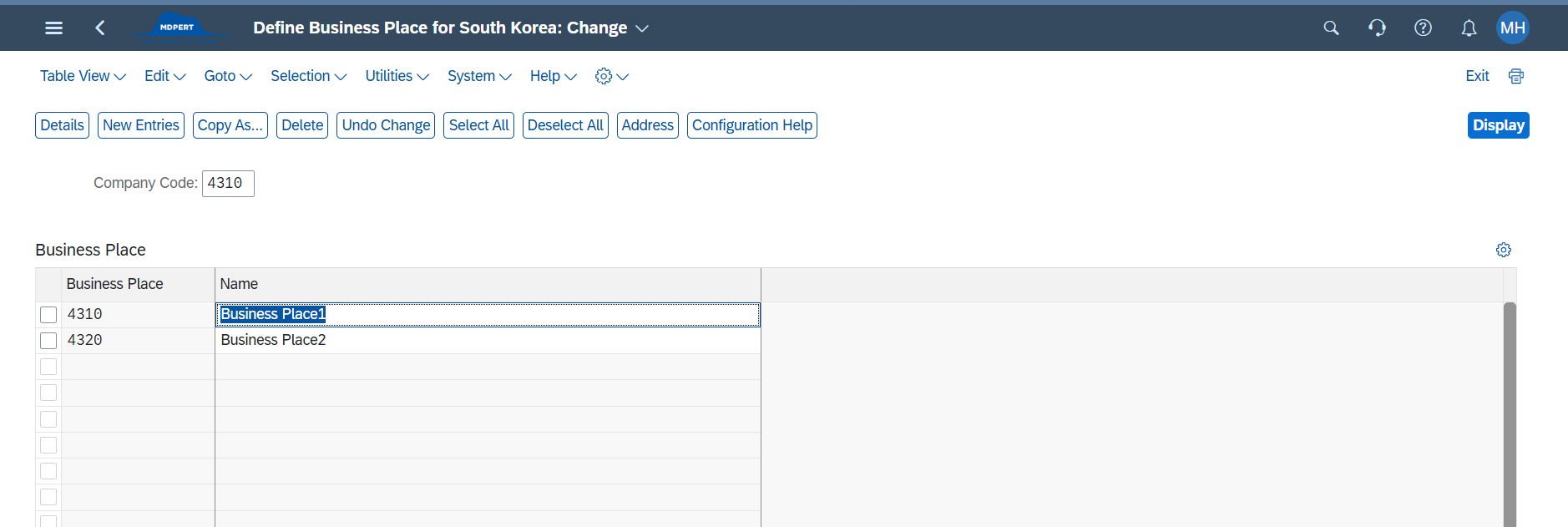 ※하나의 Company Code에 여러개의 Business Place를 할당하는 경우 -> PCE , 퍼클에서도 확인 못함