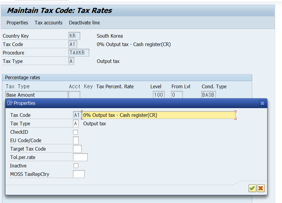 - Tax Type : Input (매입세, 구매세) / Output (매출세,판매세)