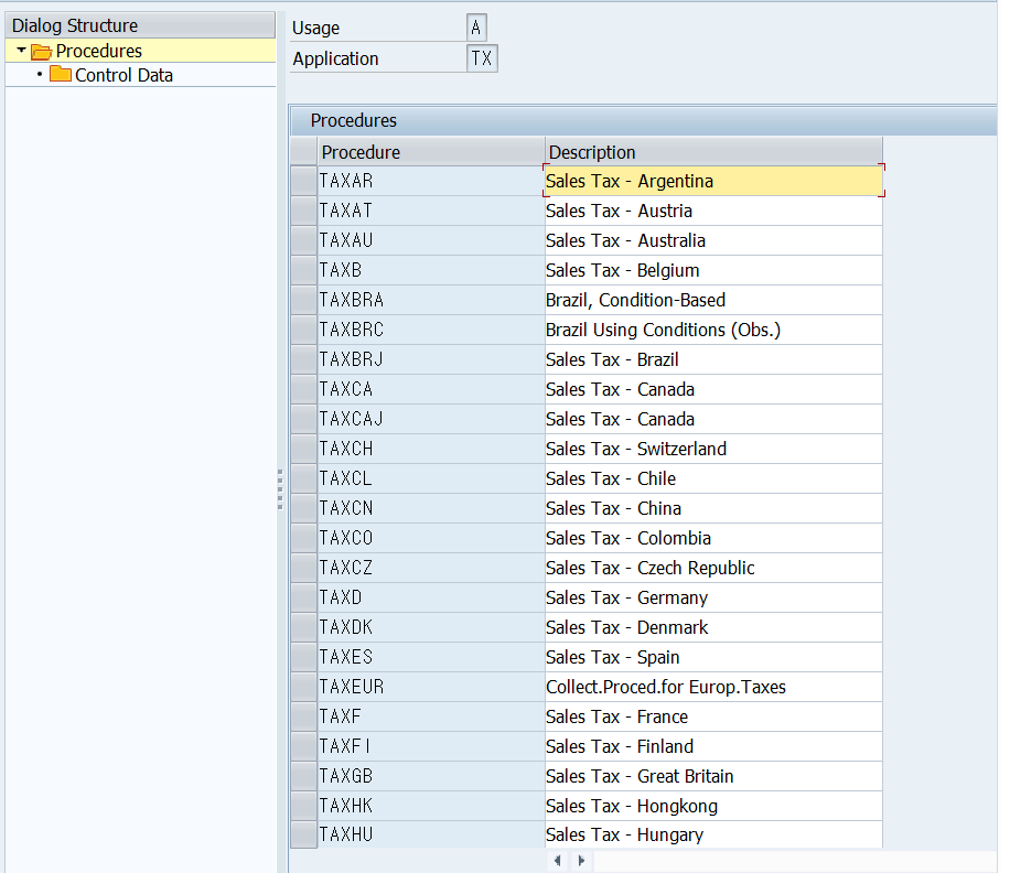 각 국가별로 하나의 세금을 계산하기 위한 기본이 되는 절차를 생성해야 함 = Tax Procedure