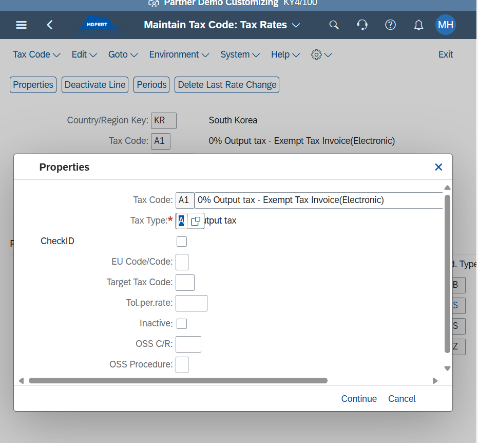 ※하나의 국가 코드에 하나의 tax procedure 연결 가능